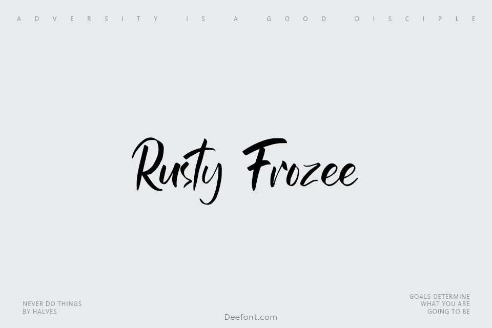 Rusty Frozee is a handwritten brush script display font with angular, rough-edged letterforms evoking street aesthetics. With 267 glyphs and multilingual support, this grunge typeface excels in posters, logos, and branding. The hand-drawn appearance and casual letterforms project authenticity and creative energy, ideal for designers seeking bold statement typography.