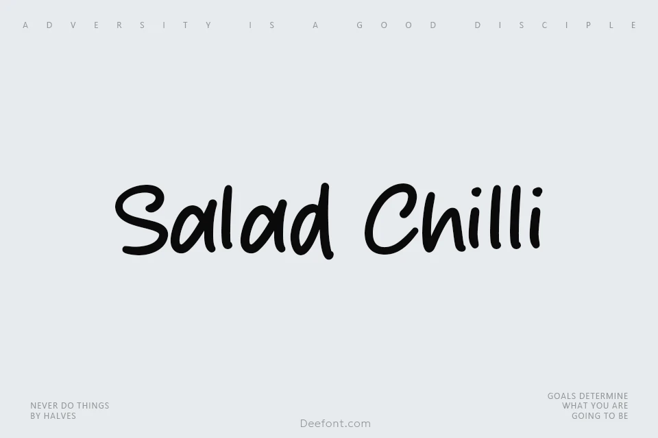 Salad Chilli Font is a handwritten-style typeface designed by MJType that captures the essence of personal touch and organic flow. The font features fluid strokes with variable widths, creating a natural look reminiscent of ink flowing across paper. Its casual elegance makes it perfect for branding projects, invitations, and designs requiring a human touch. The font includes uppercase and lowercase letters, numbers, and punctuation marks, compatible with major design software like Adobe Creative Suite and Microsoft Word. While free for personal use, a commercial license is required for business purposes. The font’s artisanal quality and inviting appearance make it particularly suited for creative industries seeking to establish a friendly and distinctive voice through typography.