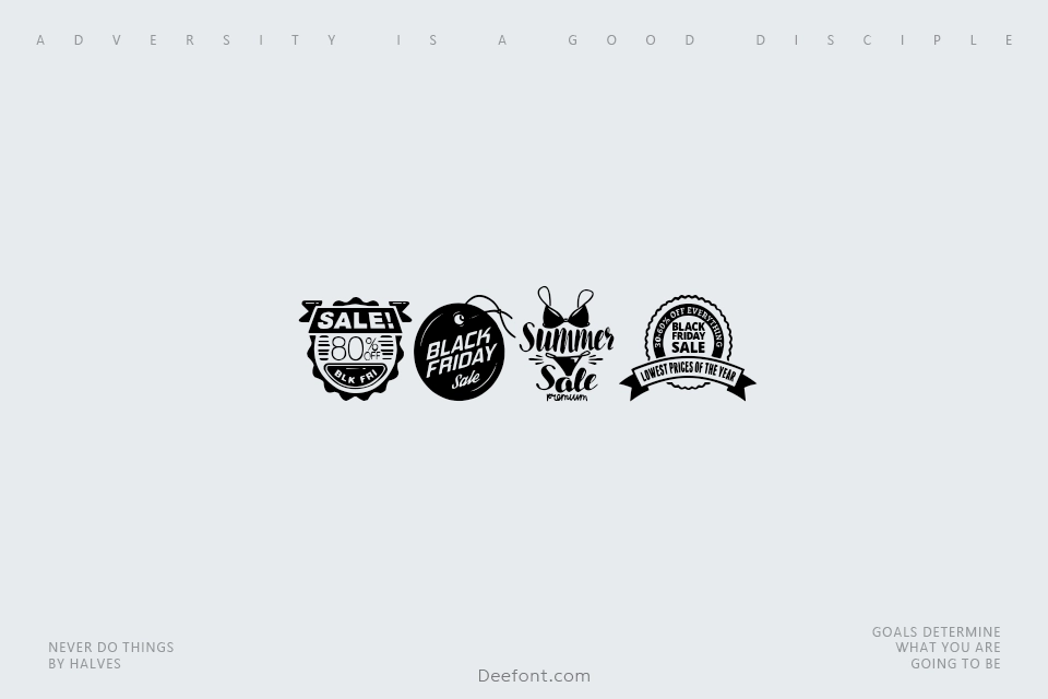 Sale Font is a charming dingbats typeface featuring a collection of 236 beautiful icons and decorative elements. Perfectly designed for creating outstanding typography and engaging visual communication, this font transforms your creative projects with versatile symbols and illustrations. Ideal for designers seeking to add playful, professional embellishments to posters, invitations, branding materials, and web designs. The meticulously compiled and vectorized icons ensure crisp rendering across all applications and sizes.