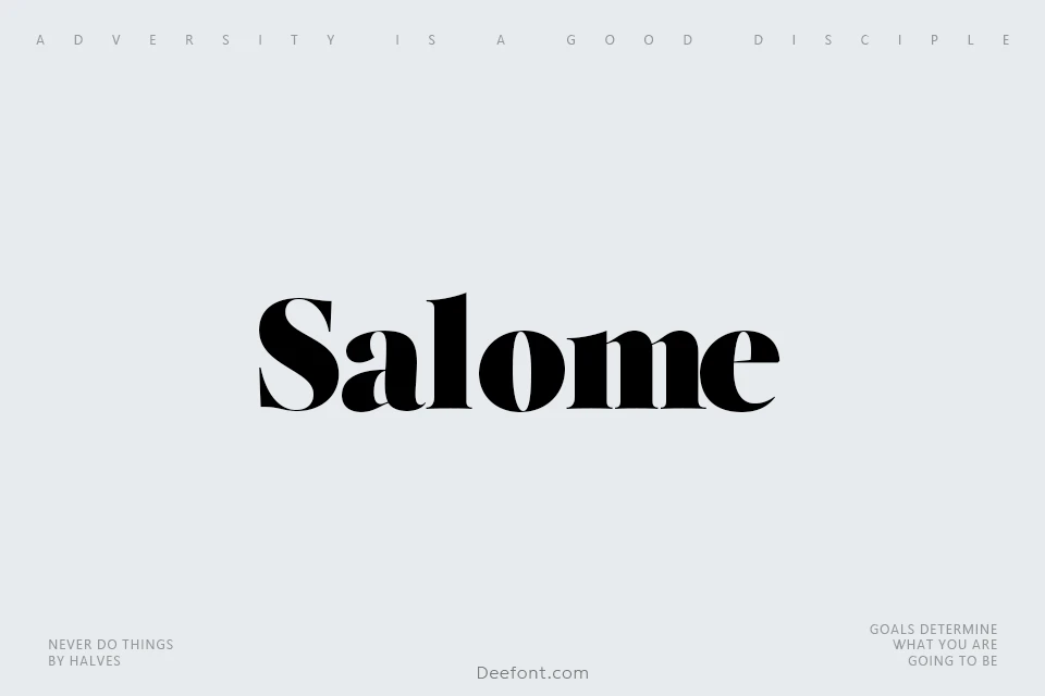 Salome Font is a striking display typeface designed with a strong Art Nouveau influence, featuring dramatic curves, high contrast, and elegant swash characters. It offers standard and discretionary ligatures, stylistic alternates, case-sensitive forms, true small capitals, and a wide range of numeral options including lining and oldstyle figures. Salomé supports extensive language coverage and is ideal for expressive headlines, branding, and editorial design.