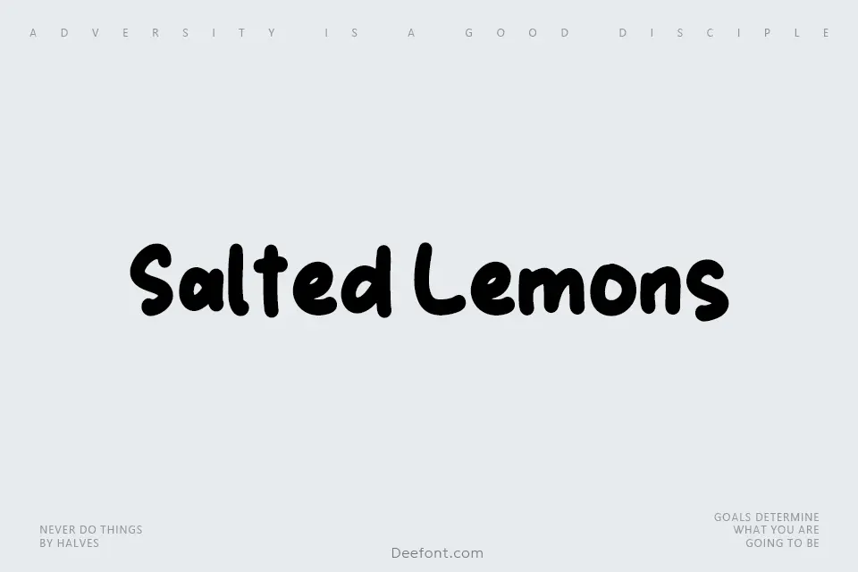 Salted Lemons Font is a bold, playful handwritten script typeface characterized by confident, casual brush strokes that capture an artisan’s touch. With its rounded, thick letterforms and organic irregularity, this font brings warmth and familiarity to any design project. Its bouncy, friendly aesthetic makes it ideal for boutique branding, whimsical invitations, engaging social media graphics, product packaging, posters, greeting cards, and display headers seeking an approachable, hand-crafted essence that bridges traditional artistry with contemporary digital design.