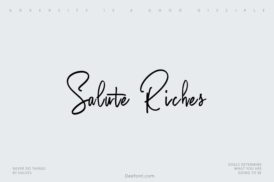 Salute Riches Handwritten Font is a stylish handwritten script font with a hand-lettering pen style, offering a natural and elegant look. It includes many OpenType features, PUA encoding, and multilingual support, making it suitable for a wide range of creative projects such as weddings, events, t-shirts, logos, badges, and more. This font brings a unique and genuine feel to your designs, perfect for both personal and professional use.