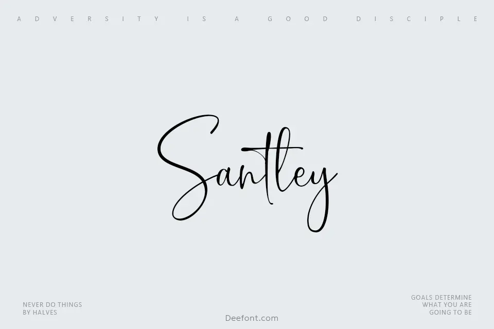Santley is an exquisite handwritten script typeface that combines delicate, flowing lines with sophisticated charm. Designed with an extra-light weight, this elegant cursive font features soft, graceful strokes that create a balance between readability and decorative appeal. The font’s thin penmanship style exudes refinement and personality, making it perfect for wedding invitations, branding materials, logo design, packaging, and editorial projects. Its refined handwriting-like aesthetic brings a humanistic touch to any design, while maintaining enough legibility for headlines and display purposes. Ideal for designers seeking to add elegance and a personal touch to their creative work.