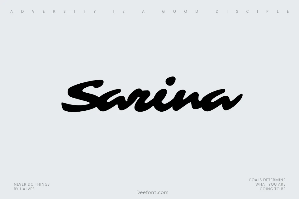 Sarina Font is a display typeface with brush style letterforms. Its medium contrast and wide setting offer a casual breezy feeling, making Sarina perfect for medium to larger sizes and creative, expressive design projects.