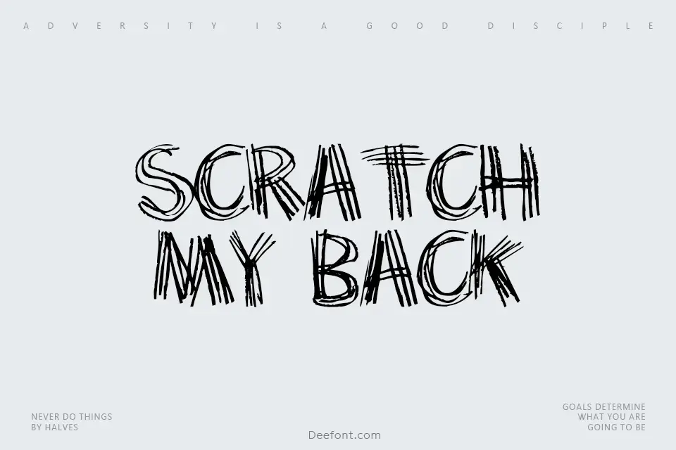 Scratch my back is a bold, scratchy handwritten display font with chunky strokes, jagged edges and a raw DIY energy. Its distressed letters feel like they were carved into paper, making it perfect for horror movie titles, Halloween posters, rock band logos, extreme sports graphics and any design that needs a wild, grunge attitude.