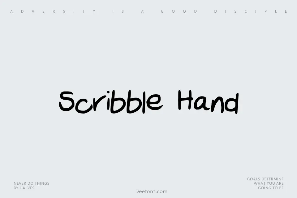 Scribble Hand is a distinctive handwritten script font that captures the essence of casual, hand-drawn lettering with loose, organic strokes and imperfect character forms. The typeface features 143 glyphs including uppercase and lowercase letters, numerals, and punctuation marks, designed to evoke a natural pen-and-paper aesthetic. Its sketchy, informal appearance makes it ideal for creative display applications such as poster headlines, branding projects, children’s materials, social media graphics, greeting cards, and informal signage. The font’s playful yet readable letterforms work exceptionally well in contexts requiring a friendly, approachable tone, from party invitations and DIY craft projects to artistic illustrations and casual editorial designs.