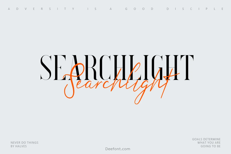 Searchlight Font Trio is a classy, vintage font collection featuring three distinctive font styles with ligatures and multilingual support. This versatile typeface works exceptionally well in both large and small sizes, making it perfect for branding projects, home-ware designs, product packaging, and magazine headers. The font trio includes Searchlight Script with flowing calligraphic elements, Searchlight Serif for classic elegance, and Searchlight Serif Long for extended design needs. Searchlight combines classic calligraphic influences with contemporary and modern aesthetics, offering uppercase, lowercase, numerals, punctuation, and symbols. The font features natural ligatures that enhance the overall design flow and supports multiple languages for international projects. Whether used as a stylish text overlay on background images or for professional branding materials, Searchlight Font Trio delivers sophisticated typography solutions that elevate any creative project to new heights.
