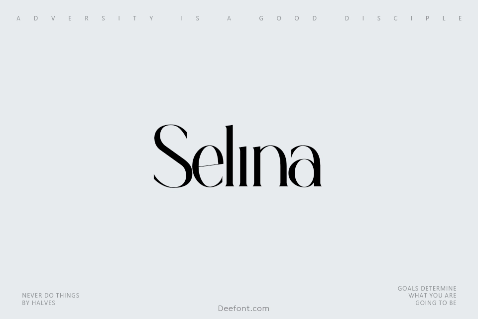 SELINA is a distinctive serif font designed by Tokopress that exudes a blend of classical elegance and modern refinement. With its semi-light weight and semi-condensed width, this font achieves a graceful balance perfect for editorial design, branding, invitations, and upscale marketing materials. The elongated serifs and nuanced curves add sophistication and personality to any creative project, whether used in print or digital media, while maintaining excellent readability.