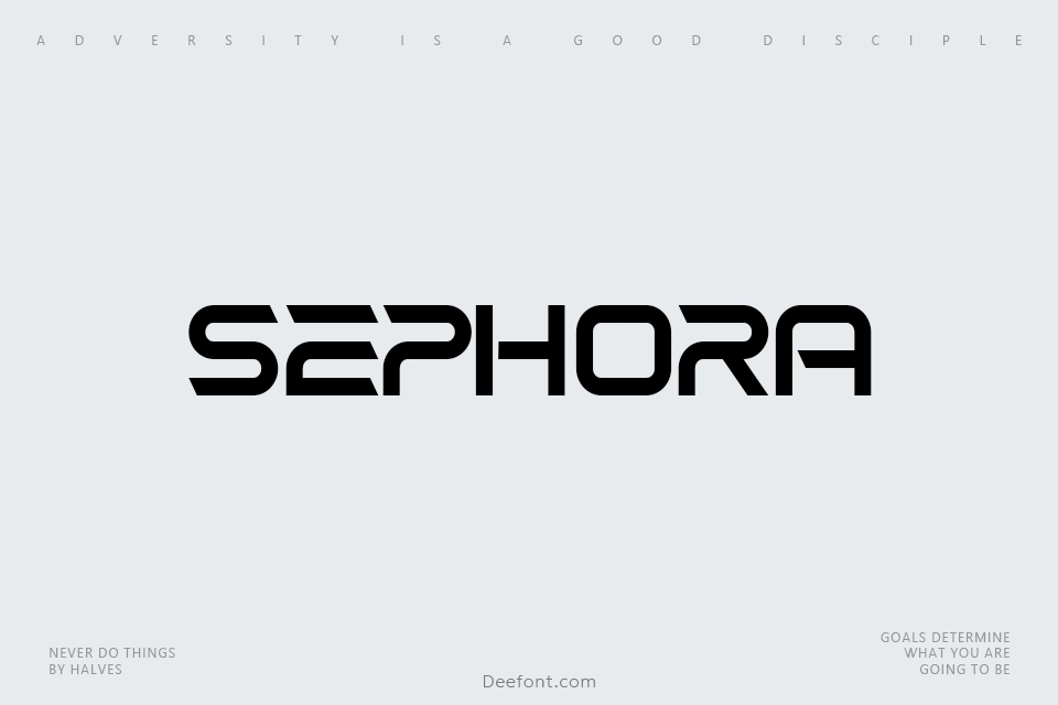 Sephora is a bold, geometric display typeface designed by Vladimir Nikolic with a distinctive techno and sci-fi aesthetic. Featuring sharp angles, clean lines, and futuristic styling, this versatile font excels at commanding attention in headlines, logos, and branding projects. Available in Regular, Bold, and Italic variants, it includes comprehensive Serbian Cyrillic character support, making it ideal for multilingual applications. The typeface combines modern minimalism with strong visual impact, perfect for contemporary design work spanning from tech presentations to creative digital displays.