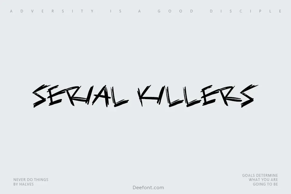 Serial Killers is a chilling script font designed by Darrell Flood. Defined by its jagged edges and chaotic, trash-style strokes, this typeface captures the essence of pure horror. It is an excellent choice for scary movie posters, Halloween party invitations, and dark, atmospheric designs that require a frantic, handwritten look.