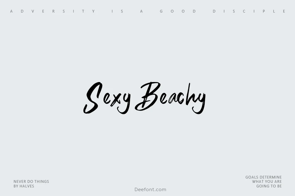 Sexy Beachy is a bold, brush-style script font designed with dynamic and flowing characters that exude a lively and energetic vibe. The typeface features striking uppercase letters with exaggerated curves and varying stroke widths, while lowercase letters maintain a playful style with loops and swashes. Ideal for branding, invitations, posters, and creative projects requiring an artistic and spontaneous touch.