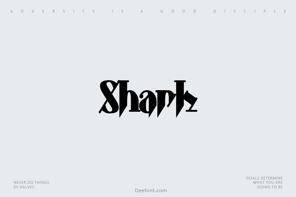 Shark is a bold Gothic and modern typeface created by Glyphobet Font Foundry, featuring distinctive angular and contemporary letterforms. Originally designed as an early version of Haylurker for the masthead of The Fish Rap Live!, the alternative student newspaper at UC Santa Cruz, this display font combines geometric precision with striking visual impact. With 224 glyphs supporting multiple character sets including Basic Latin, Greek, and extended characters, Shark delivers powerful typography for creative projects seeking a modern aesthetic with character depth.