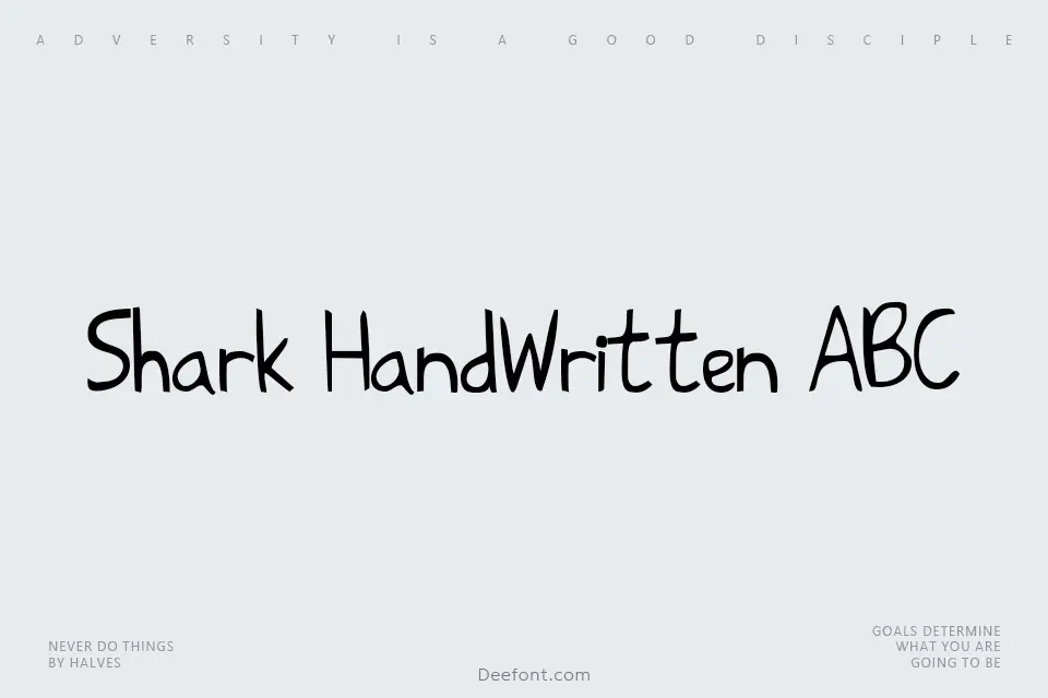 Shark HandWritten ABC is a charming handwritten font with relaxed, naturally imperfect strokes that capture the essence of casual pen-on-paper lettering. Its flowing organic letterforms and friendly character make it ideal for creative projects requiring a personal, approachable aesthetic. Perfect for greeting cards, children’s designs, product packaging, social media graphics, poster headlines, and any project demanding a warm, handmade visual appeal without sacrificing legibility.