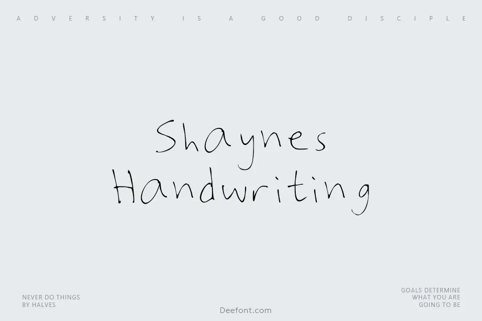 Shaynes Handwriting is a delightfully casual handwriting script font that captures the warmth and authenticity of natural penmanship. With flowing letterforms and organic strokes, this typeface delivers a personal, approachable aesthetic ideal for invitations, greeting cards, posters, and creative branding projects. The font’s inherent charm makes it perfect for adding a human touch to titles, headlines, and decorative elements, though it works best in larger sizes for optimal readability and visual impact in design compositions.