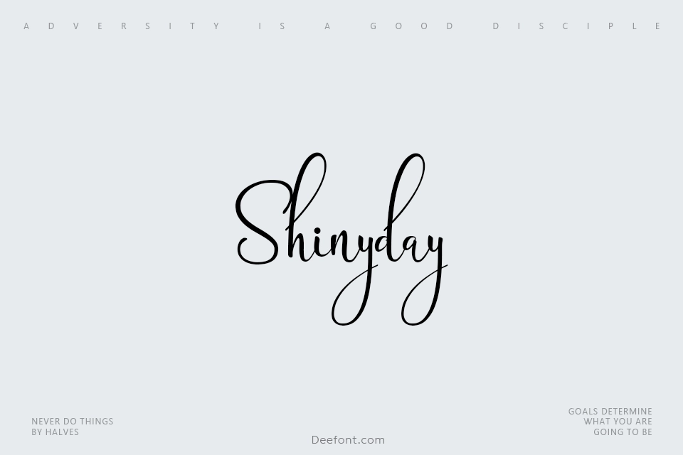 Shinyday is a fashionable and elegant script font designed for modern creatives. This contemporary calligraphy typeface features sweet, stylish alternates with a feminine aesthetic combined with high-end quality. Perfect for titles, display work, posters, blogging, branding, social media content, and feminine-themed designs. With its strong personality and youthful spirit, Shinyday brings sophistication and charm to any creative project requiring distinctive visual impact.
