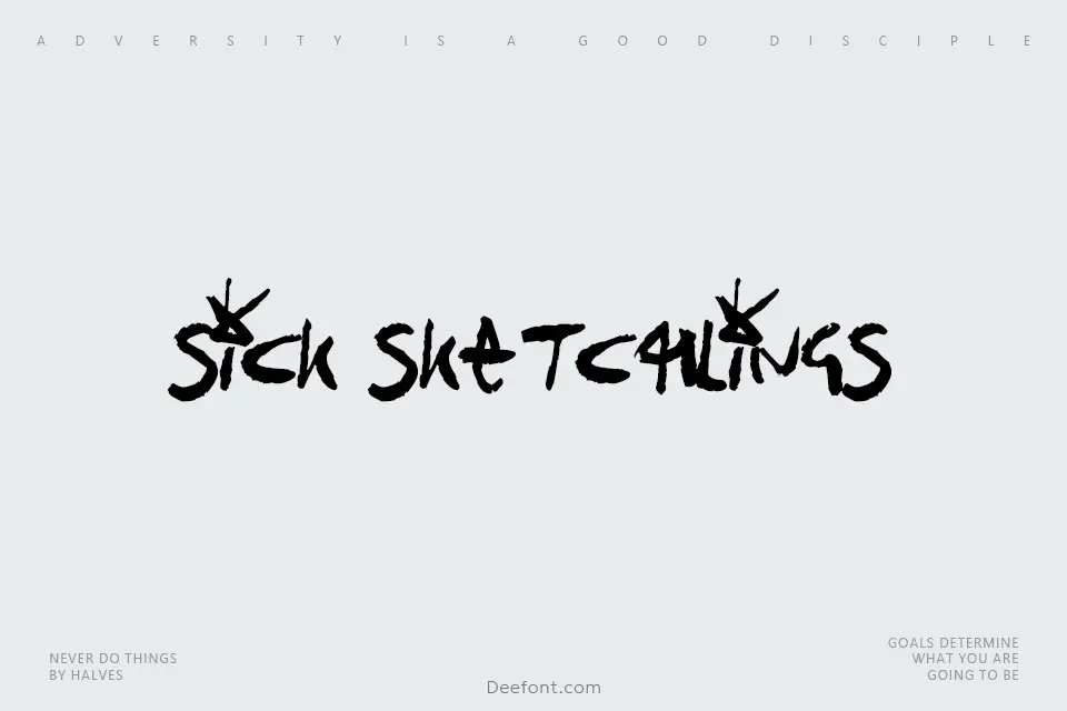 Sick Sketchlings is a distinctive handwritten font featuring a playful and whimsical style characterized by irregular lines and imperfect curves. Designed with charming imperfections and handwritten aesthetics, this versatile typeface is ideal for creative projects including greeting cards, posters, logos, and artistic compositions. The font’s casual and sketchy appearance adds a unique creative flair to any design, making it perfect for projects requiring personality and artistic expression. With 91 characters available, it brings authentic handwritten character to both personal and professional applications.