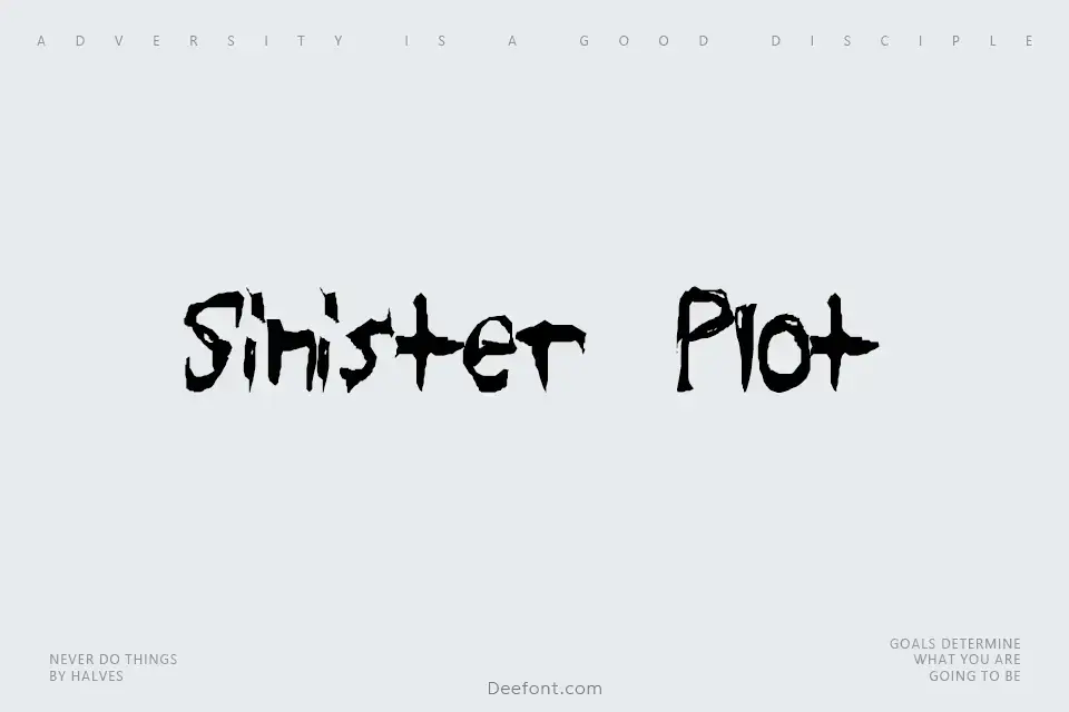 Sinister Plot is a striking display script font featuring bold, angular letterforms with sharp serifs and dramatic strokes. The typeface embodies a menacing, theatrical character with closed counters and spiky terminals that evoke danger and intrigue. Its thick stems and elongated descenders create strong visual impact, making it ideal for horror movie titles, Halloween-themed designs, posters, and promotional materials requiring a creepy, mysterious atmosphere. The font’s organic quality and elegant spurs balance its edgy appearance, allowing it to work effectively in both high-impact theatrical branding and urban design contexts. Perfect for designers seeking a haunting yet sophisticated typeface.