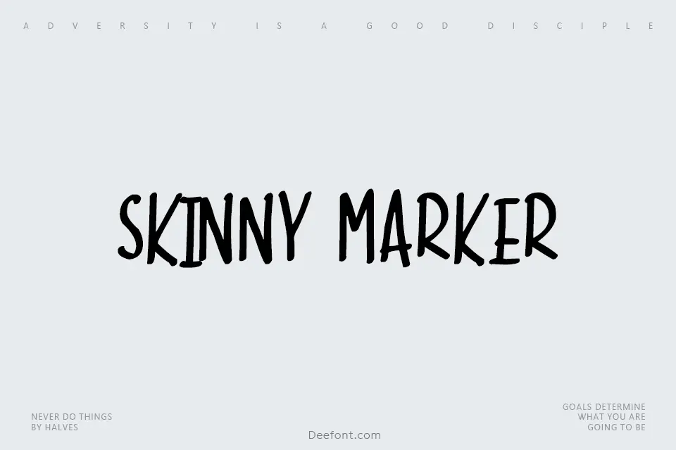 Skinny Marker is a hand-drawn handwritten script font featuring tall, narrow characters with delicate pen strokes and organic, marker-like irregularities. Created using Scanahand technology, this font delivers an authentically casual appearance ideal for posters, title designs, greeting cards, and creative branding projects. The thin stroke weight and playful character construction make it especially suited for designs targeting younger audiences or projects requiring an artistic, street-inspired aesthetic inspired by quick graffiti tags.