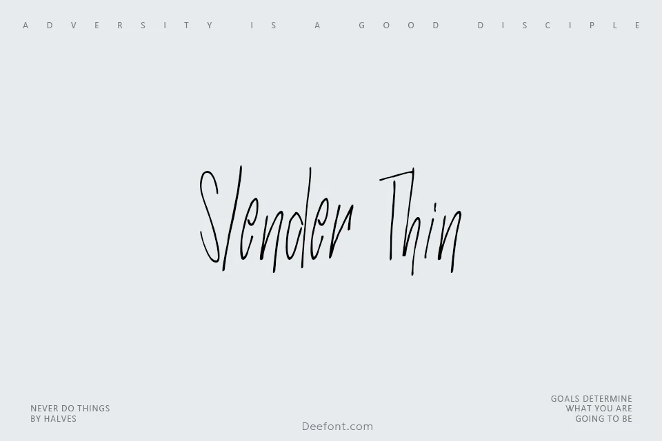 Slender Thin is an elegant and refined script font that combines smooth flowing strokes with a distinctive thin weight, creating a sophisticated and modern handwritten aesthetic. Perfect for elegant invitations, branding materials, logos, and creative typography projects, this versatile font brings grace and personality to any design. The delicate letterforms showcase expressive handwritten characteristics with polished elegance, making it ideal for wedding designs, greeting cards, and premium branding. With its unique blend of fluidity and contemporary minimalism, Slender Thin transforms text into an artistic statement.
