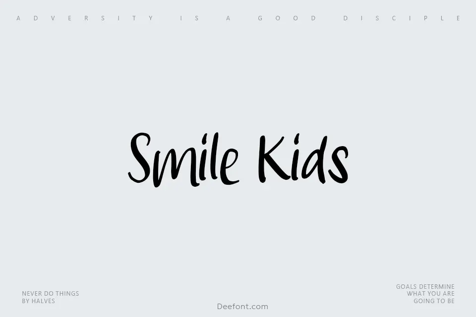 Smile Kids Font is a semi-light handwritten script with rounded, bouncy strokes that feel friendly and energetic. Ideal for children’s books, birthday cards, nursery posters, kid-focused logos and packaging, it keeps letters clear and highly readable. Use it for playful headlines, party invitations and social media graphics whenever you need a warm, kid-friendly touch.
