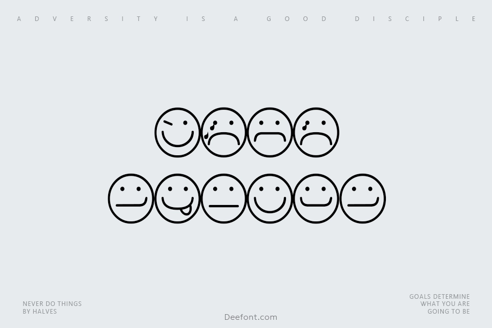 Smileyface is a delightful dingbats font featuring over 130 happy, sad, angry, confused, and whimsical facial expressions. This creative typeface allows you to seamlessly incorporate expressive smiley face characters into your designs without manual drawing. Perfect for adding personality to documents, invitations, greeting cards, and creative projects. Convert characters to outlines in design software for complete customization. A versatile and playful font that brings joy and emotion to any typography project with its unique collection of expressive faces.