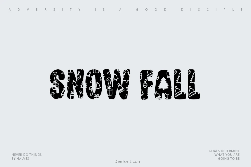 Snowfall is a joyful and festive display font designed specifically for Christmas and winter-themed projects. This Snowfall font features bold, condensed letters decorated with charming winter-themed ornaments and illustrations, making it perfect for creating a cheerful holiday atmosphere. The Snowfall typeface maintains a minimalistic approach while retaining the festive spirit needed to elevate any design project. Snowfall includes uppercase and lowercase letters, numerals, punctuations, accents with multilingual character support, and ligatures with alternative stylistic sets. This Snowfall font works seamlessly on both PC and Mac systems with simple installation process. The Snowfall display font is ideal for digital invitations, greeting cards, website banners, store signs, stationery elements, social media posts, brochures, flyers, catalog covers, book covers, and gift items.