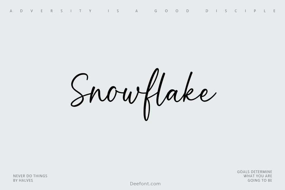 Snowflake is an enchanting handwritten script font that combines elegant curves with modern sophistication. This versatile typeface features smooth, flowing lines perfect for wedding invitations, greeting cards, social media graphics, and creative projects. The font’s delicate yet confident strokes create a romantic and contemporary feel, making it ideal for any design requiring a personal, sophisticated touch to elevate typography.