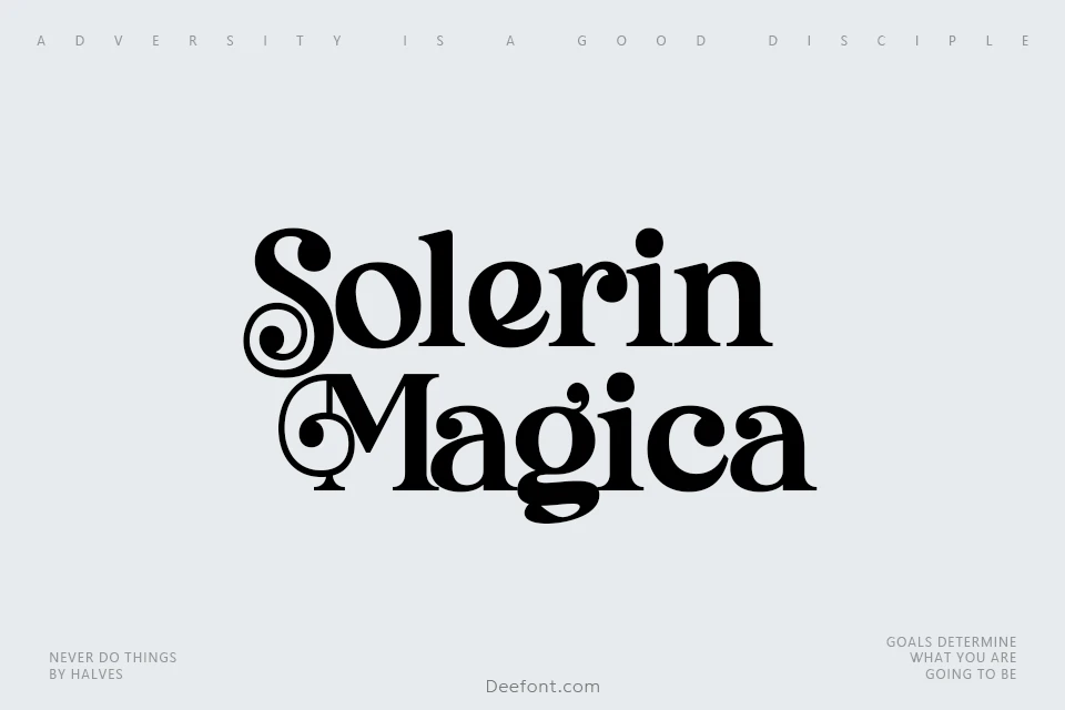 Solerin Magica Font is a modern and classy serif font with a unique style and modern appearance. This elegant typeface commands attention with its sophisticated curves and confident lines, designed to exude refinement and class. Solerin Magica is perfect for creating elegant and luxury logos, book or movie title designs, fashion branding, magazines, clothing designs, lettering, quotes, and much more. The font features a bold serif design that combines traditional elegance with contemporary aesthetics, making it ideal for projects that require a touch of sophistication. With its clean lines and excellent readability, Solerin Magica is also suitable for body text in longer documents such as books or reports. This PUA encoded font provides easy access to all glyphs and swashes, enhancing its versatility for various design applications.