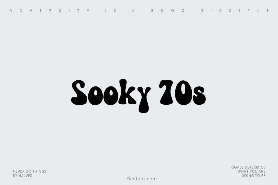 Sooky 70s is a fun and playful bubbly display font with a groovy retro feel, inspired by the spirit of the 1970s and 1990s. This versatile typeface features a bold, whimsical design perfect for merchandise, posters, magazines, and t-shirts, bringing nostalgic charm and vibrant personality to any creative project with its distinctive bubble-style letterforms.