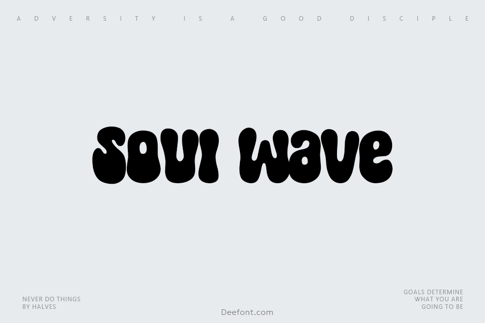 Soul Wave is a vibrant retro display font that captures the groovy essence of 1960s and 1970s design aesthetics. Featuring distinctive wavy characteristics and smooth, flowing letterforms with minimal sharp edges, this organic typeface brings a nostalgic yet contemporary flair to any project. Perfect for posters, album covers, headlines, and branding, Soul Wave combines playful creativity with sophisticated elegance. The font’s fluid design and unique character variation make it an ideal choice for designers seeking to infuse retro-inspired charm into modern visual communications.