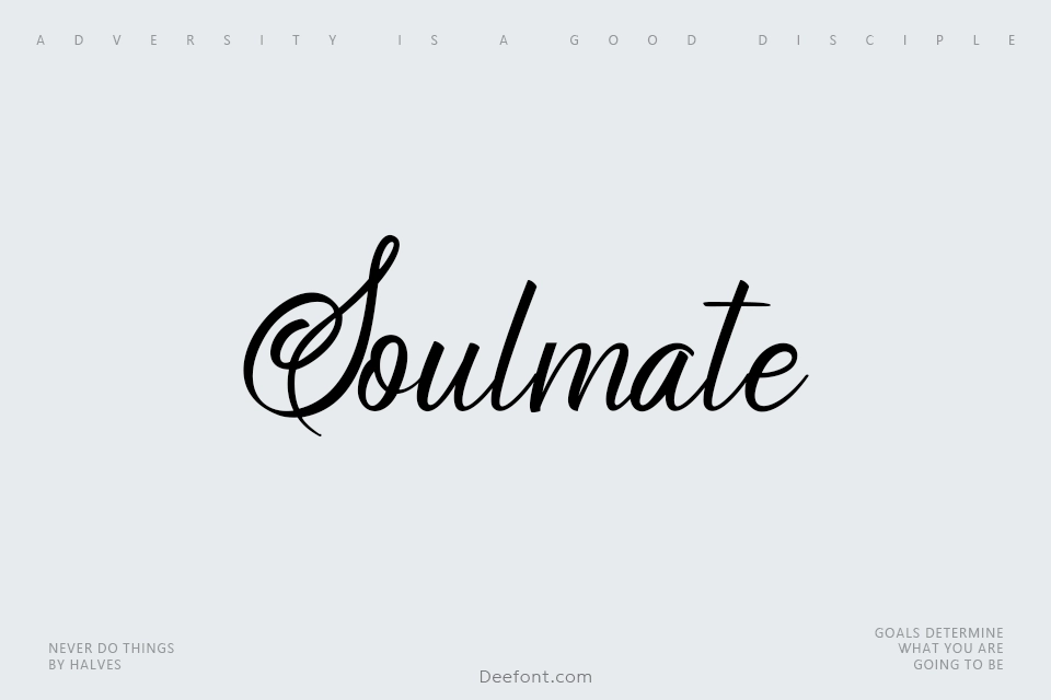 Soulmate is an elegant, luxury, and classy calligraphy script font designed with a sophisticated feel. This handwritten display font features numerous alternates and stylistic variations, making it ideal for creative projects such as wedding invitations, greeting cards, and artistic designs. The font combines modern elegance with graceful letterforms, offering designers multiple expressive options through alternate characters. Perfect for both digital and print applications, Soulmate brings a refined and contemporary touch to any typographic project.