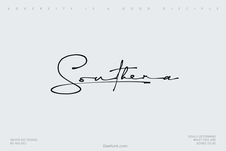 Southera is a stylish and delicate handwritten script font featuring clean, thin lines and smooth curves that evoke a modern calligraphy aesthetic. This elegant signature typeface excels in creating sophisticated designs for wedding invitations, feminine branding, luxury packaging, and decorative headers. With its natural flowing strokes and refined character forms, Southera brings authenticity and charm to logos, greeting cards, and creative typography projects. The font’s graceful letterforms and carefully balanced proportions make it ideal for fashion brands, beauty products, and any design requiring a touch of elegance and personal expression. Its 160 glyphs offer versatility for multilingual applications, making it a go-to choice for designers seeking refined handwritten aesthetics without sacrificing legibility.
