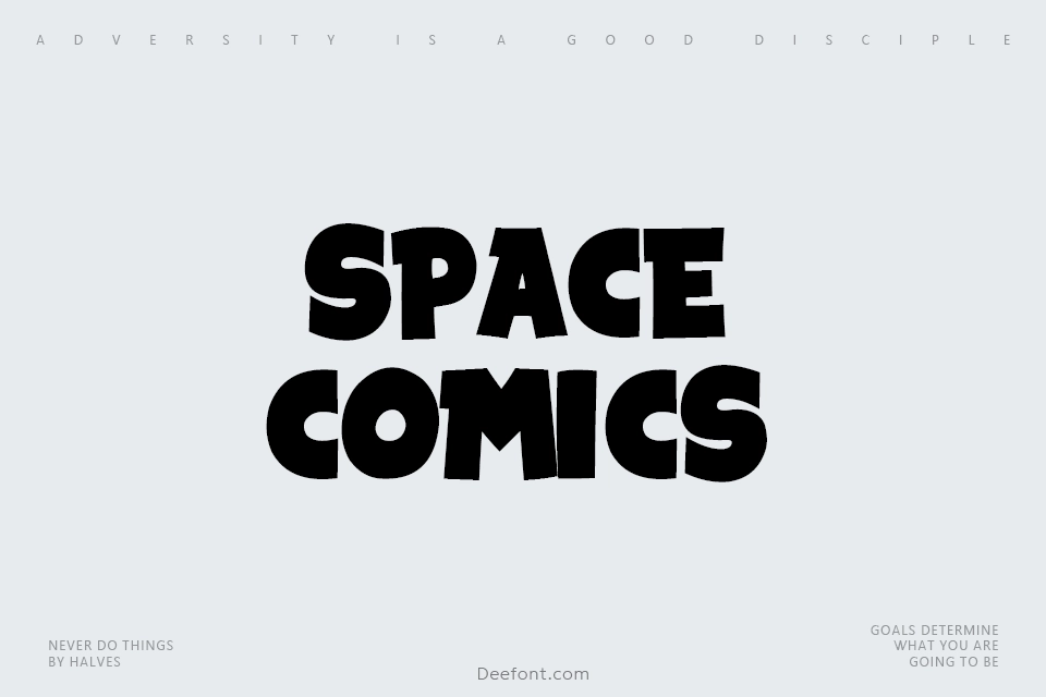 Space Comics is a bold, playful display font featuring thick, rounded characters with a comic book influence. The typeface is characterized by exaggerated curves and a friendly, approachable appearance ideal for creative projects. With its distinctive whimsical aesthetic, Space Comics delivers consistent style across uppercase, lowercase, and special characters, making it perfect for headers, logos, posters, and comic-inspired designs that demand visual impact and charm.