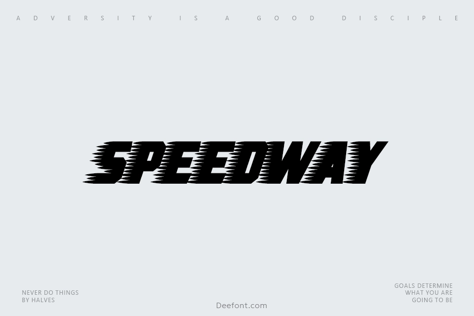 Speedway is a bold, display-oriented typeface inspired by racing aesthetics, featuring distinctive characteristics reminiscent of the iconic Speedway logo. This versatile font excels in headlines, signage, branding, and creative projects where impact and visual appeal are paramount. With its retro-inspired design and dynamic presence, Speedway transforms ordinary text into engaging visual statements, making it an ideal choice for posters, logos, and high-impact typography that demands attention.