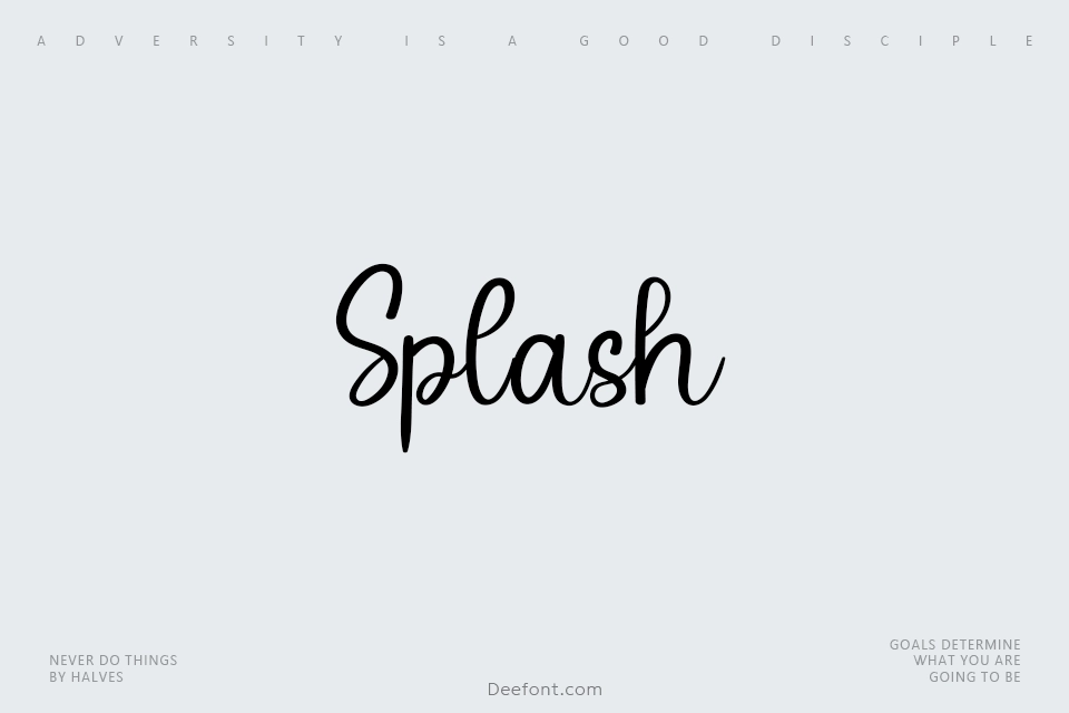 Splash is a captivating script font created by Etik Fatimah that brings artistic flair to your designs. Inspired by splatters from a heavily inked architectural ruling pen, this handwritten typeface features dynamic strokes and fluid letterforms perfect for logos, branding, invitations, and creative projects. With its playful yet elegant character, Splash adds authentic charm and visual interest to any design endeavor.