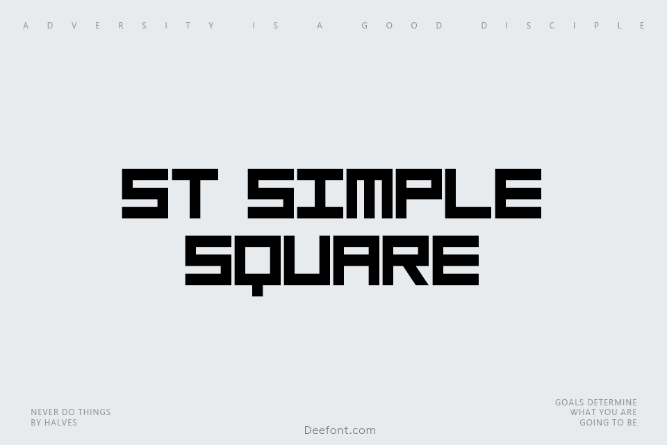 ST Simple Square is a bold, geometric sans-serif display font with retrofuturistic styling. Created on simple square geometry, it combines constructivism influences with contemporary minimalism. Featuring small caps and strong, squared-off letterforms, this typeface excels in headlines, logos, and tech-inspired designs. Supporting 15+ languages including Latin and Cyrillic scripts, it brings modern precision and striking visual impact to any project requiring a clean, impactful presence.