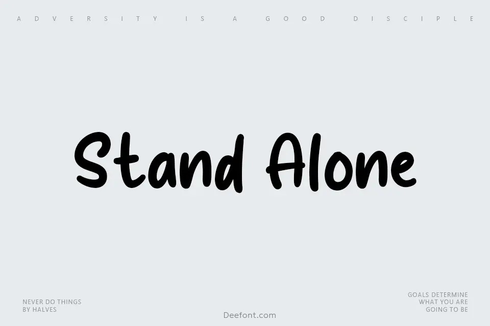 Stand Alone is an attractive handwritten brush script font designed with authentic Procreate brushes and carefully vectorized to create a natural, relaxed character. This script typeface delivers quick, casual lettering with distinctive brush stroke textures ideal for posters, logos, product packaging, and inspirational quotes. With comprehensive OpenType features including ligatures and stylistic alternatives, Stand Alone brings personality and authenticity to headline designs, branding projects, and creative display work. Perfect for designers seeking genuine handwritten aesthetics.