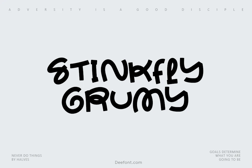 Stinkfly Grumy Font is a quirky display font designed to bring a playful and unique touch to your creative projects. Perfect for logos, branding, homeware designs, product packaging, and more, this font stands out with its whimsical and distinctive character shapes, making your designs truly memorable.