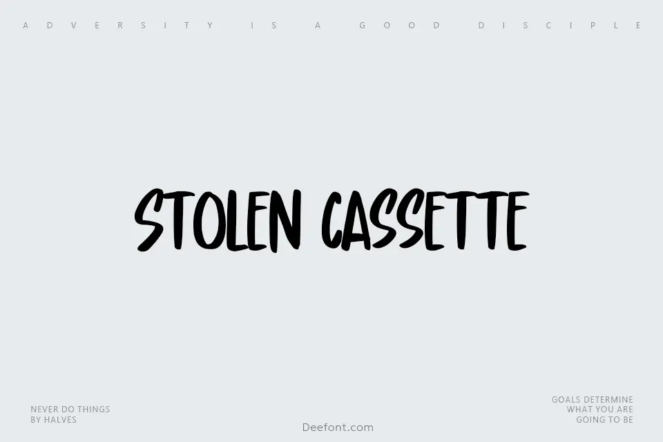 Stolen Cassette is a striking handwritten display font that combines bold, dynamic letterforms with a slanted, condensed aesthetic. Designed by Gassstype Studio, this font features closely-spaced characters with an energetic, slightly rough appearance reminiscent of vintage cassette tape aesthetics. The condensed spacing and pronounced angular strokes create a distinctive personality ideal for posters, music-related designs, band merchandise, retro graphics, and eye-catching display typography. Whether used for album covers, event promotions, or creative headlines, Stolen Cassette brings authentic handwritten charm with contemporary flair to any design project seeking bold visual impact.