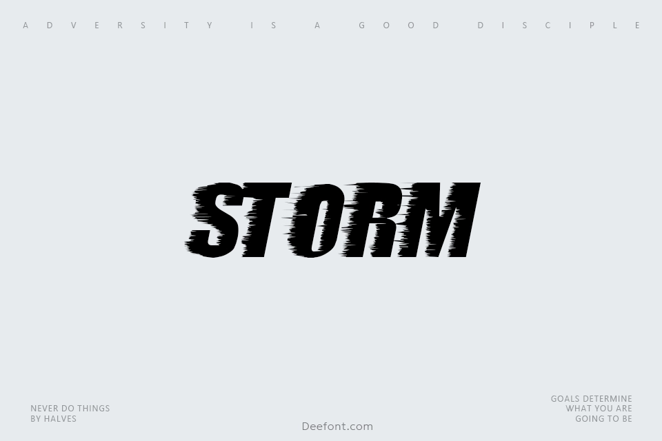 Storm is a bold, distressed display font designed by Dieter Schumacher with a striking motion-blurred effect. Featuring thick, confident letterforms with an eroded aesthetic, this typeface is perfect for headlines, branding, and eye-catching designs that demand attention. The ExtraBold weight delivers intensity and power, making it ideal for posters, gaming projects, and contemporary branding applications where impact is essential.