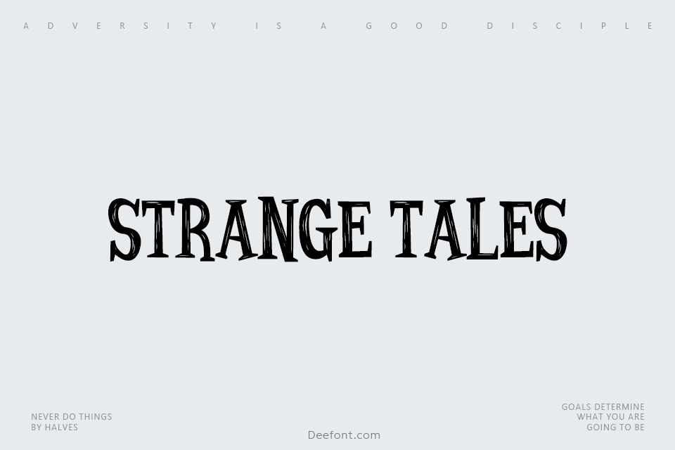 Strange Tales is a distinctive decorative display font designed for bold and creative typography. Featuring a bold, high-contrast style with artistic and unique strokes, this retro-inspired typeface brings a classic charm to headlines, titles, and eye-catching designs. Perfect for vintage projects, posters, branding, and any design work seeking a distinctive character and vintage flair.