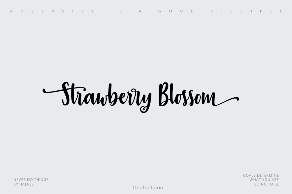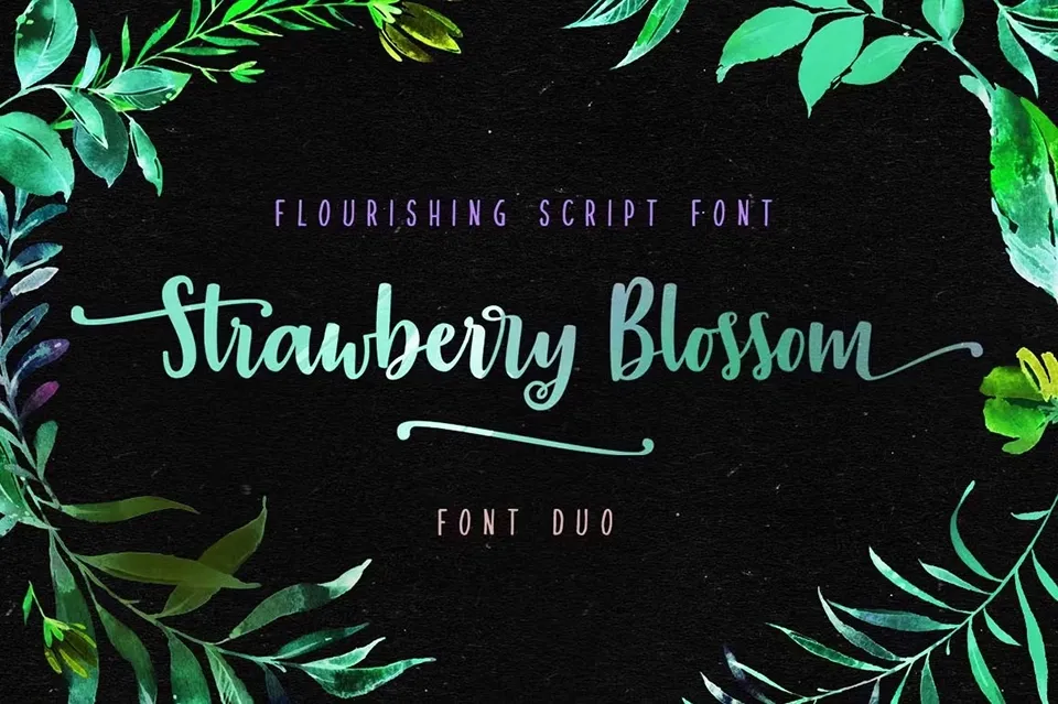 Strawberry Blossom Font is a casual and flourished script font that brings an elegant touch to your creative projects. This beautiful handwritten typeface features flowing curves and decorative swashes that make it perfect for logo design, branding, modern advertising, poster quotes, book covers, editorial design, cards, custom mugs, pillows, t-shirts, and any hand-lettered needs. The font includes uppercase and lowercase characters with stylistic alternates, and the full commercial version offers a huge set of alternate glyphs, contextual ligatures, and underlinings to create your own unique style. Strawberry Blossom Font also comes with a companion font called Strawberry Flowers, which is a cool casual sans serif font that pairs beautifully with the main script typeface. This font duo is ideal for DIY projects, cards, posters, packaging, web design, photos, scrapbooking, and any creative design that requires a feminine and romantic touch.