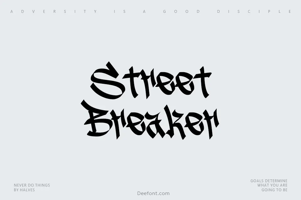 Street Breaker is a dynamic script font inspired by bold graffiti and urban street art. Its energetic brushstrokes and playful character shapes make it ideal for eye-catching logos, posters, and social media graphics. With a strong, modern flair, Street Breaker delivers a sense of movement and creativity, perfect for projects that demand a vibrant, youthful touch. The font is available for personal use, with a commercial license offered separately from the designer.