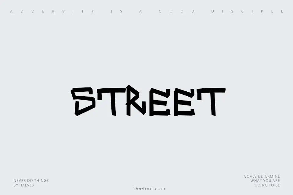 Street is a bold and expressive display font inspired by urban street art and graffiti culture. Born from an artistic expression that takes shape in public spaces on walls and streets, this font features a singular personality with strong visual impact. Perfect for designs including t-shirts, sportswear, logos, advertisements, and creative branding projects seeking an energetic urban aesthetic.