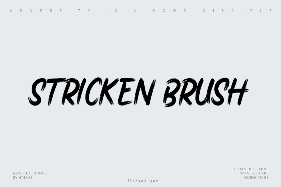 Stricken Brush is a modern brushed script font designed by Nurf Designs, featuring artistic and creative letterforms perfect for posters, movie titles, book covers, and quotes. With its dynamic brush strokes and contemporary aesthetic, this font brings elegance and character to any design project seeking a touch of sophistication.