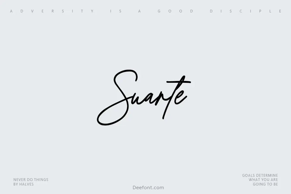 Suarte is a graceful handwritten script font that captures the essence of authentic brush strokes and natural pen work. With its flowing letterforms and distinctive brush-like characteristics, this typeface delivers a sophisticated yet casual aesthetic suited for creative applications. Perfect for poster design, logo creation, signature styling, stationery, typography quotes, magazine covers, and display headings, Suarte brings an organic, handcrafted feel to any design project.