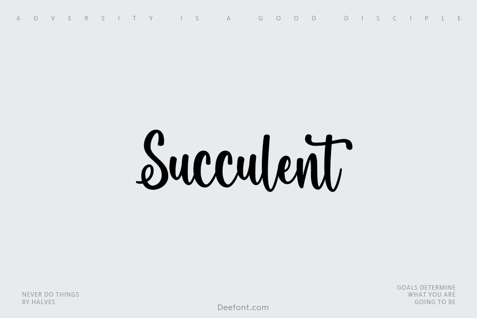 Succulent is a bold, modern handwritten script font designed to bring a playful bounce and elegance to your creative projects. This semi-bold typeface features smooth, fluid strokes perfect for headlines, branding, and decorative typography. With over 122 glyphs and support for accents and Euro characters, Succulent delivers a contemporary handlettering aesthetic ideal for social media content, posters, and creative design work.