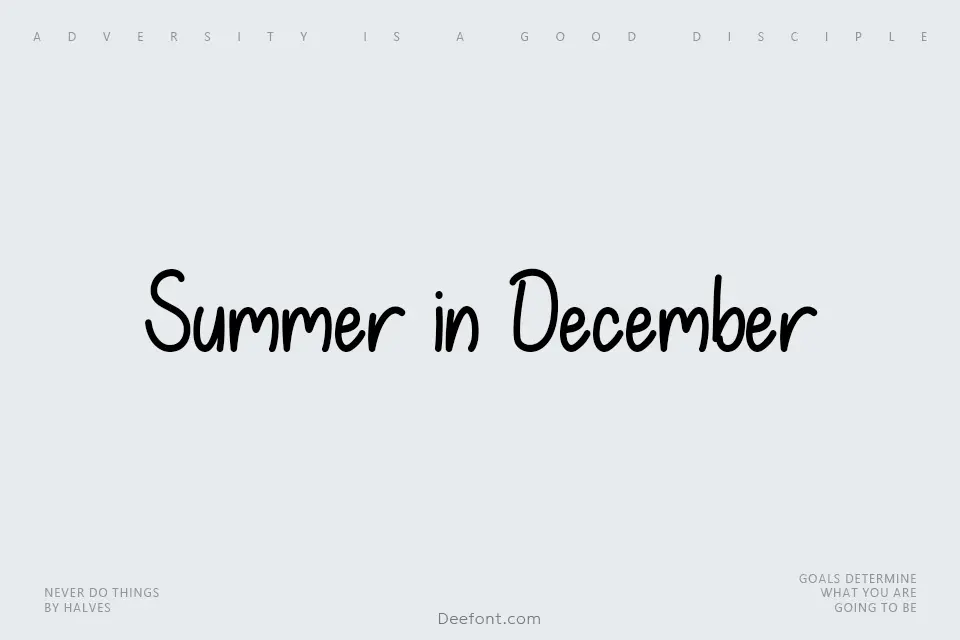 Summer in December is a warm and inviting handwritten script font designed with friendly, organic letterforms that capture the whimsy of seasonal celebration. The typeface features smooth, flowing characters with excellent readability and includes special decorative symbols—sun smileys, cloud faces, hearts, and ornamental frames—accessed through keyboard characters. With its playful yet refined aesthetic, this font is ideal for holiday posters, greeting cards, gift tags, party invitations, social media graphics, decorative titles, and festive seasonal branding projects that require a personal, human touch.