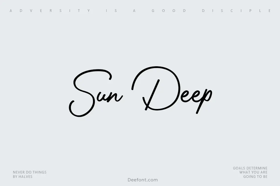 Sun Deep is a beautifully flowing handwritten script font that combines elegant cursive styling with smooth, connected characters. Its graceful sweeping lines and organic letterforms create a sophisticated yet approachable aesthetic, making it ideal for creative designs including posters, wedding invitations, logo designs, greeting cards, and eye-catching title work. The font’s light weight and flowing nature evoke a personal, artistic touch perfect for brands seeking a warm, contemporary handwriting style in both digital and print media.