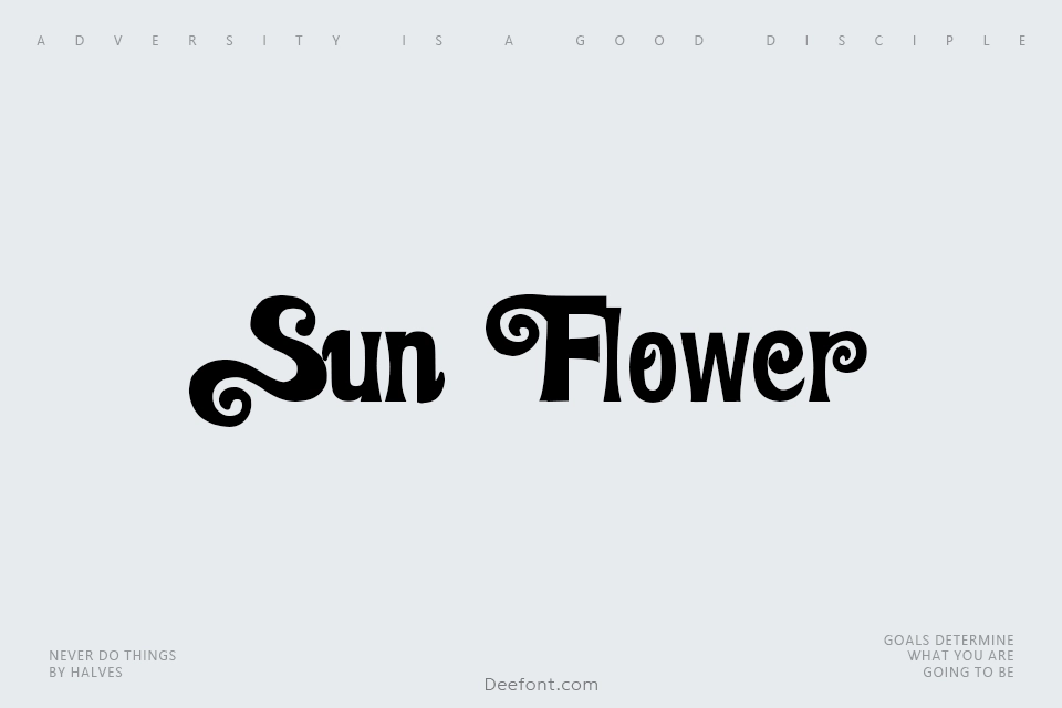 Sun Flower is a decorative display typeface designed by Display Studio with a distinctive cute and modern aesthetic. This elegant font features charming letterforms and multilingual support, making it ideal for brand logos, invitations, greeting cards, packaging, posters, and creative design projects. The typeface combines artistic flair with practical versatility, offering designers a sophisticated tool for crafting eye-catching headlines and expressive typography across diverse media applications.